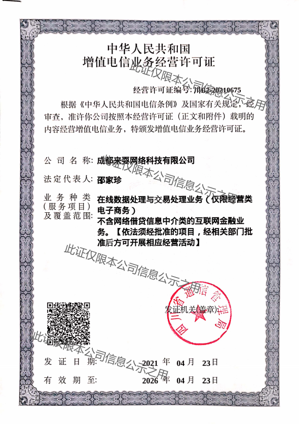 增值电信业务经营许可证-川B2-20210675