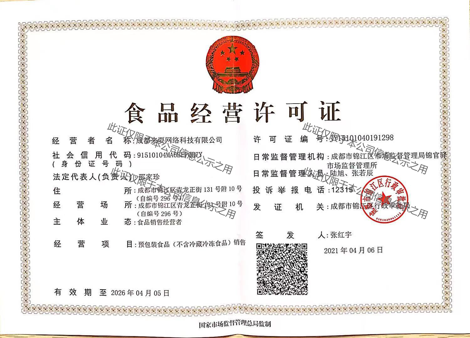 食品经营许可证